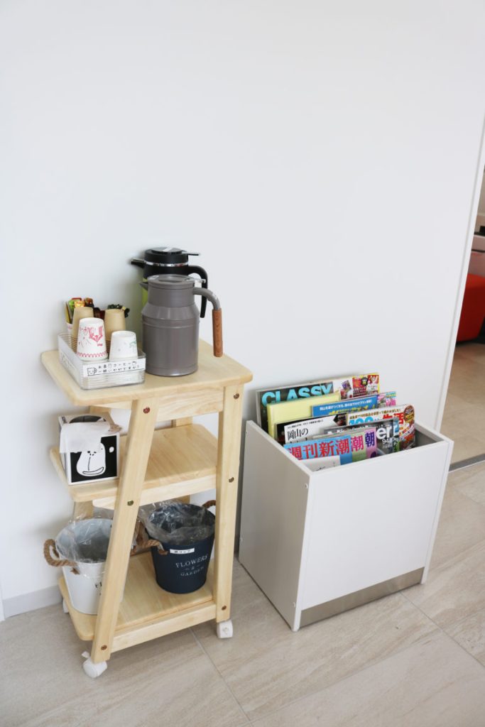 治療をお待ちいただいている保護者の皆さんも、ぜひお茶やコーヒーなどを飲みながらくつろいでいただけたらと思っています ^^) _旦~~